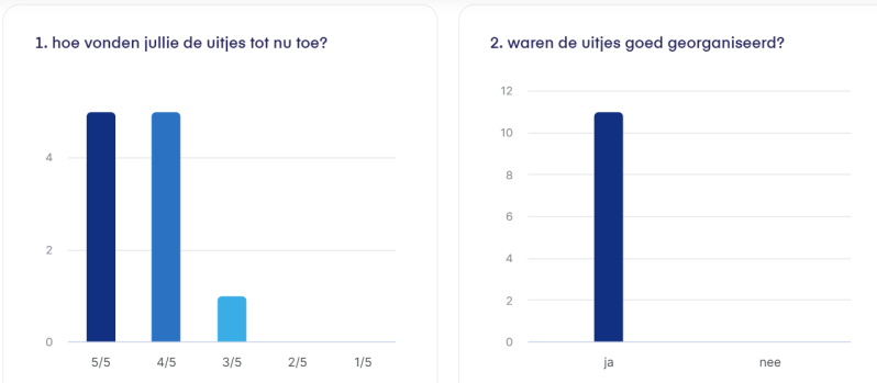 Ik heb een aantal foto's gemaakt met deze uitjes en ik heb gevraagd via een survio wat iedereen van de uitjes vond.