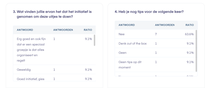 Zoals hierboven is te zien hebben 11 jongens uit mijn team gereageerd en over het algemeen beviel het erg goed dat het uitje was georganiseerd. Hiernaast kreeg ik nog wel de tip dat ik iets meer out of the box moet denken en dus misschien niet te bescheiden iets aanpakken als ik het initiatief neem.